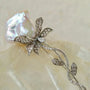 Design: Floral rose silhouette with climbing leaves and a single large baroque pearl as the bud