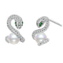 Each earring features a gracefully coiled snake—its shimmering scales paved with micro-set zircon stones, its emerald-green eyes glinting with allure—protecting a luminous pearl drop. The contrast between the gothic serpent and the soft pearl embodies the duality of power and grace, making these earrings the ultimate statement piece for women who dare to stand out.