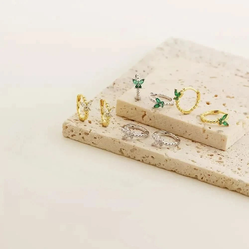 Handcrafted in 925 sterling silver, available in gold or silver plating, and adorned with green or white gemstones that shimmer like morning dew. Elegant, lightweight, and endlessly charming — perfect for your everyday sparkle. ✨