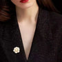 Inspired by the elegance of the camellia flower — a symbol of eternal love and refined grace — this brooch embodies understated luxury. The combination of warm gold and soft pearlescent tones creates a sophisticated statement for any occasion, whether pinned to a silk blouse, a coat lapel, or a classic scarf.