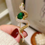Unleash your inner elegance with this striking Green Diamond Snake Brooch. Designed in a serpentine silhouette, this statement pin features a sparkling emerald-green crystal set against a winding body of dazzling pavé-set cubic zirconia. Crafted from eco-friendly gold-plated brass, the brooch is nickel-free and hypoallergenic, ensuring both beauty and comfort.