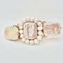 Embrace timeless grace with our Enchanting Pink Pearl Hair Clip. This exquisite piece features a mesmerizing central pink pearl, elegantly framed by two lustrous, iridescent pearls that gleam with pastel reflections. Encircled by a halo of petite white pearls and nestled within an ornate gold filigree design, this hair clip is the epitome of sophistication. Its unique shape and radiant sheen make it a versatile accessory for both everyday elegance and special soirees. Add this charming touch of luxury to your collection and let your hairstyle bloom with beauty.