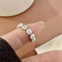 Its adjustable open band design ensures a comfortable and flexible fit, making it perfect for daily wear or as a heartfelt gift for someone special. Whether paired with romantic lace, a classic dress, or your favorite knitwear, this flower silver ring adds a touch of grace and sparkle to any look.