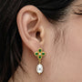 • Design: Four-petal gemstone stud with pearl drop