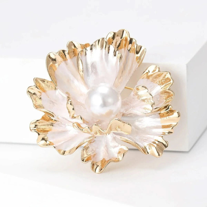 Elegant Gold Peony Pearl Brooch – A Symbol of Grace and Sophistication