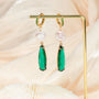 Green Crystal Huggie Earrings with Baroque Pearl
