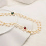 ✨ Long Freshwater Pearl Necklace with Red & Green Crystal Accents ✨