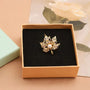 Handcrafted in gold-plated metal, the maple leaf is outlined with brilliant zircon stones, radiating with delicate sparkle, while a lustrous freshwater pearl rests at the centre — symbolising purity, harmony, and renewal.