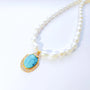 ✨ Freshwater Pearl Choker Necklace with Turquoise Pendant ✨