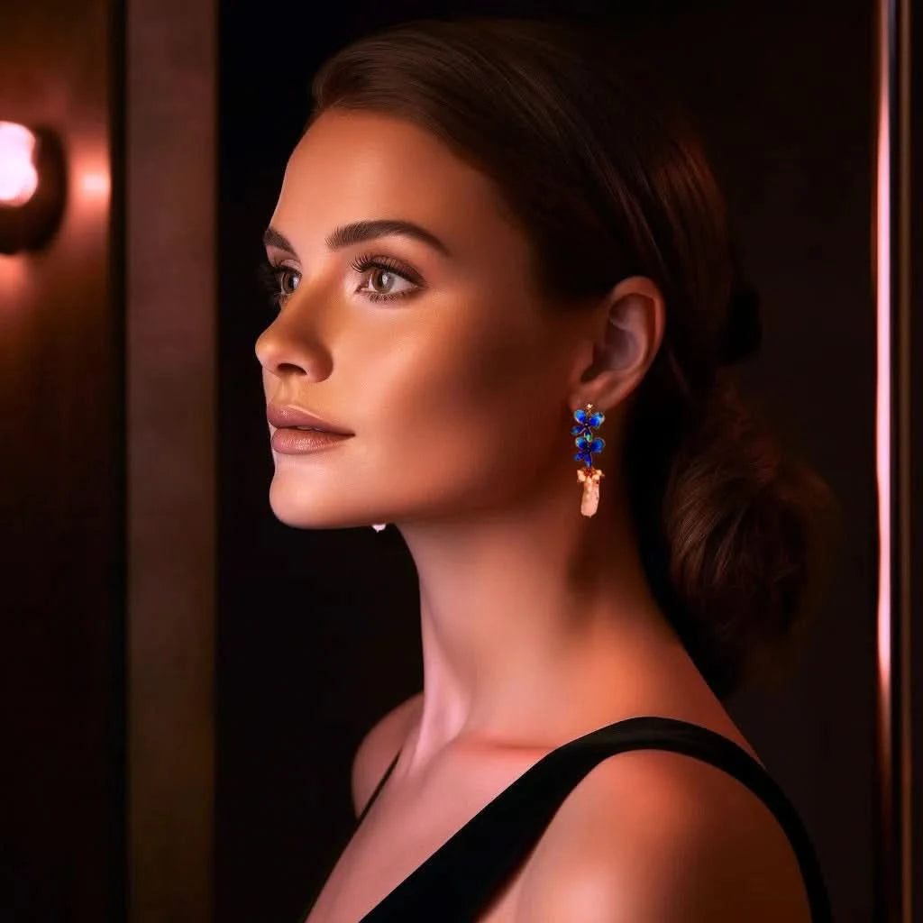 These Flower Stud Baroque Pearl Drop Earrings feature gold-plated bases with blue or gold flower studs and baroque pearls. They are perfect for adding a unique yet elegant look to any outfit. The craftsmanship is superior, and the timeless design ensures you can style these earrings for years.