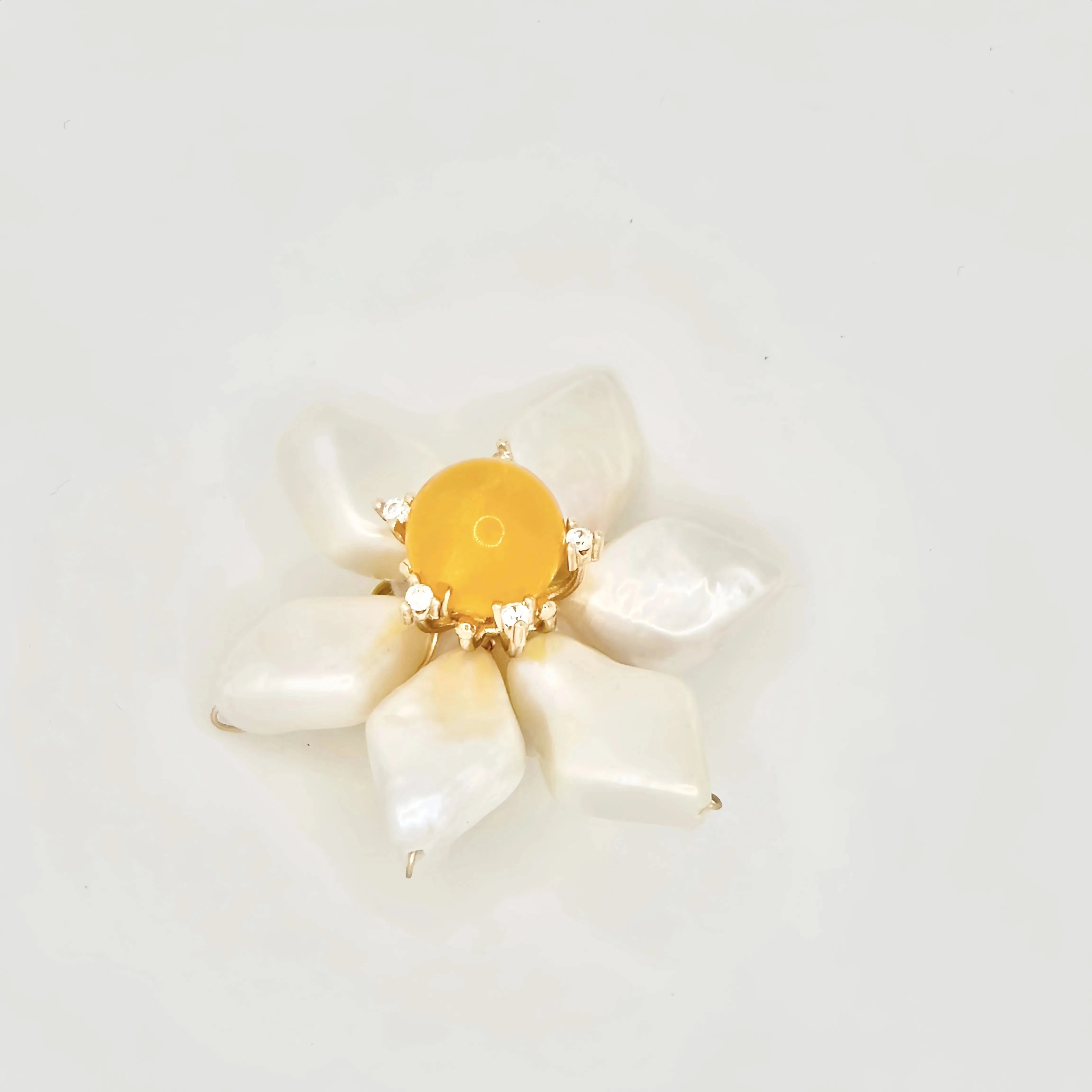 The Baroque Pearl Flower Brooch with Yellow Stone by Angel Barocco celebrates natural beauty and artistic design.