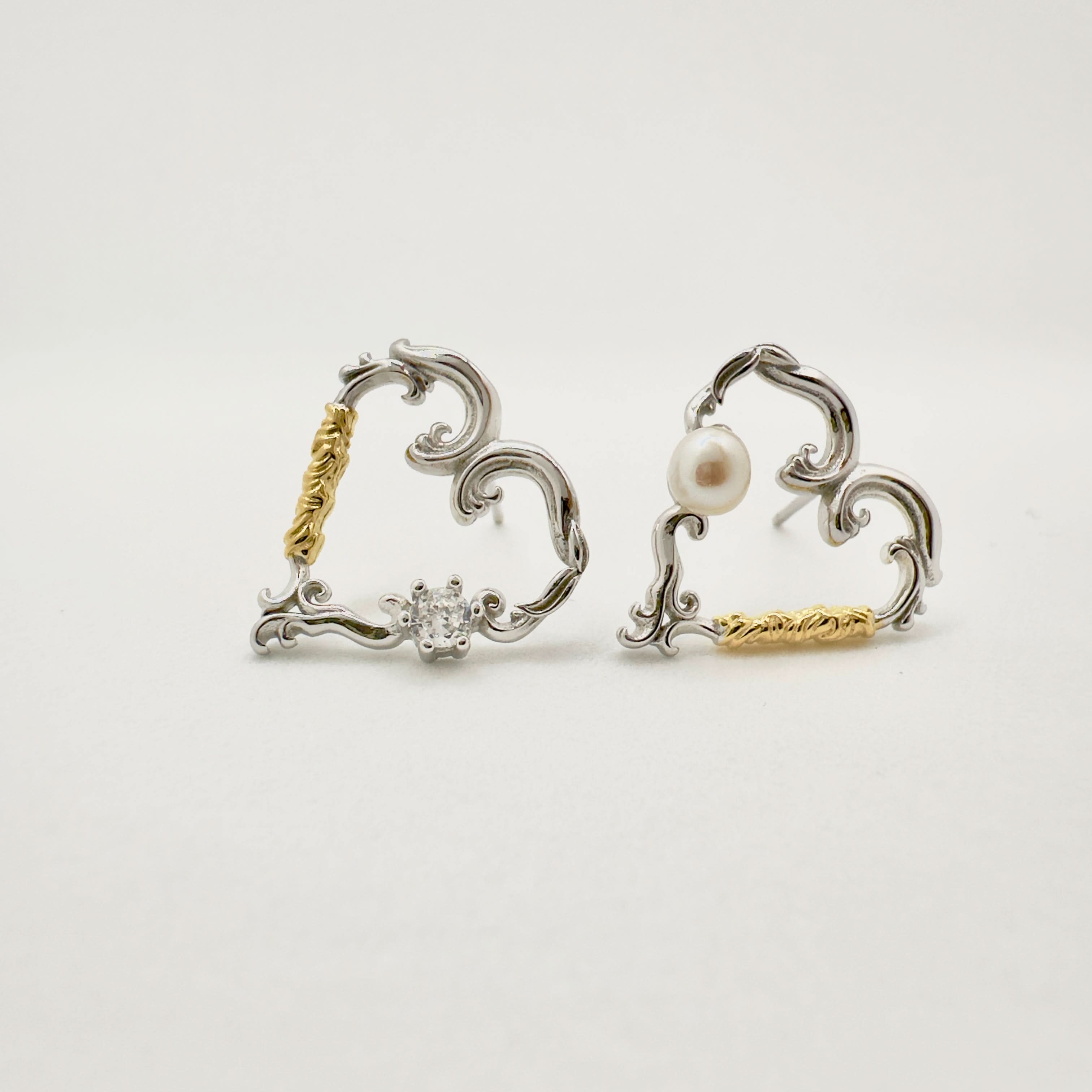 The Charlotte Heart Silver Pearl Earrings by Angel Barocco beautifully capture timeless elegance with a touch of modern charm. Designed in a romantic open-heart silhouette, these earrings feature a delicate combination of lustrous freshwater pearls, a sparkling zircon accent, and a touch of gold-plated texture, symbolizing love, balance, and grace.