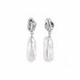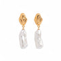 The sculptural metal stud adds a contemporary touch, creating a striking contrast between fluid pearl silhouettes and sleek, polished metal. Lightweight yet eye-catching, these earrings elevate any outfit with understated luxury.