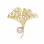 Available in two variations — soft pink and classic white freshwater pearls — each brooch features a finely sculpted gold-plated ginkgo leaf, intricately adorned with sparkling zircon crystals that capture light with every movement.