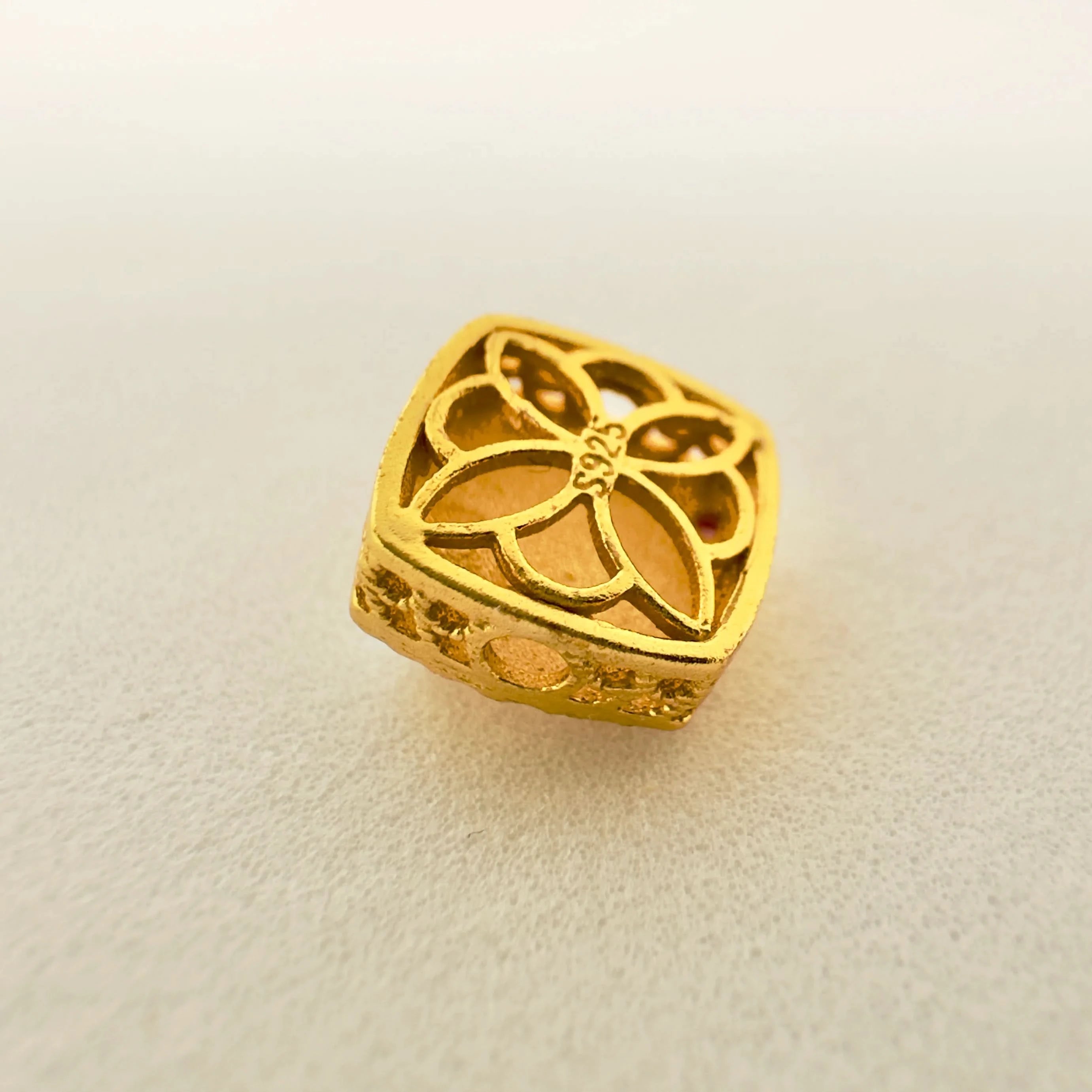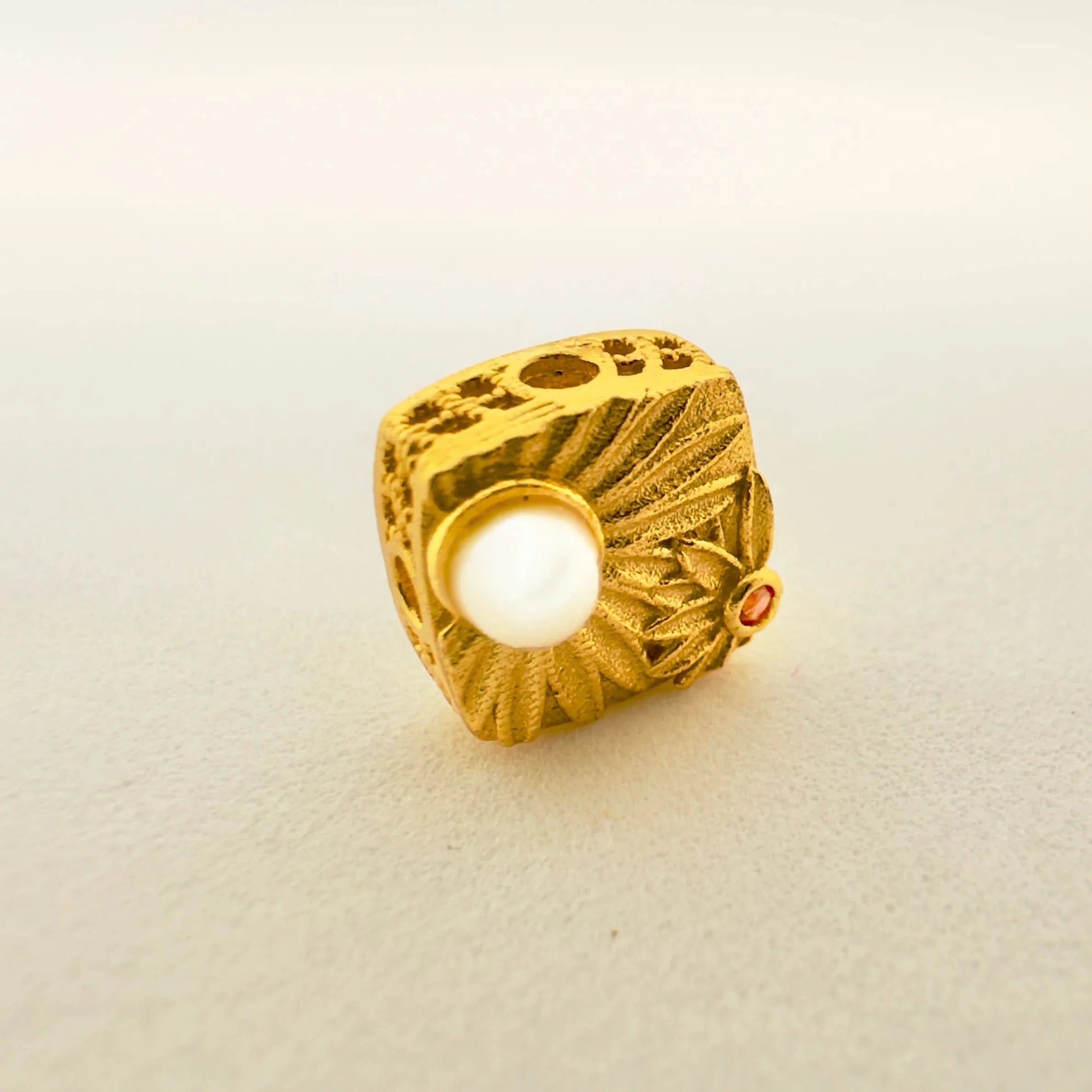 Finish: Matte gold engraved surface with smooth pearl accent